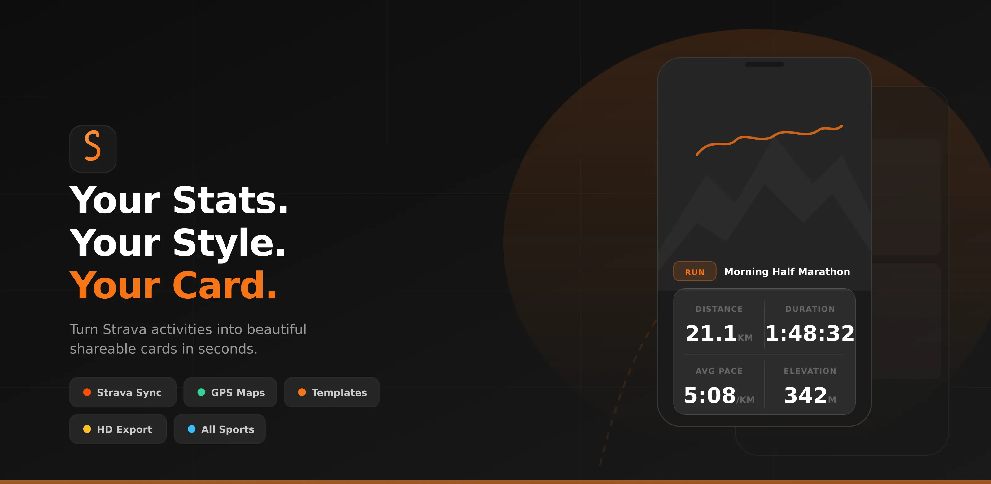 Mobile app that transforms fitness activity data into customizable, shareable visual cards for social media.